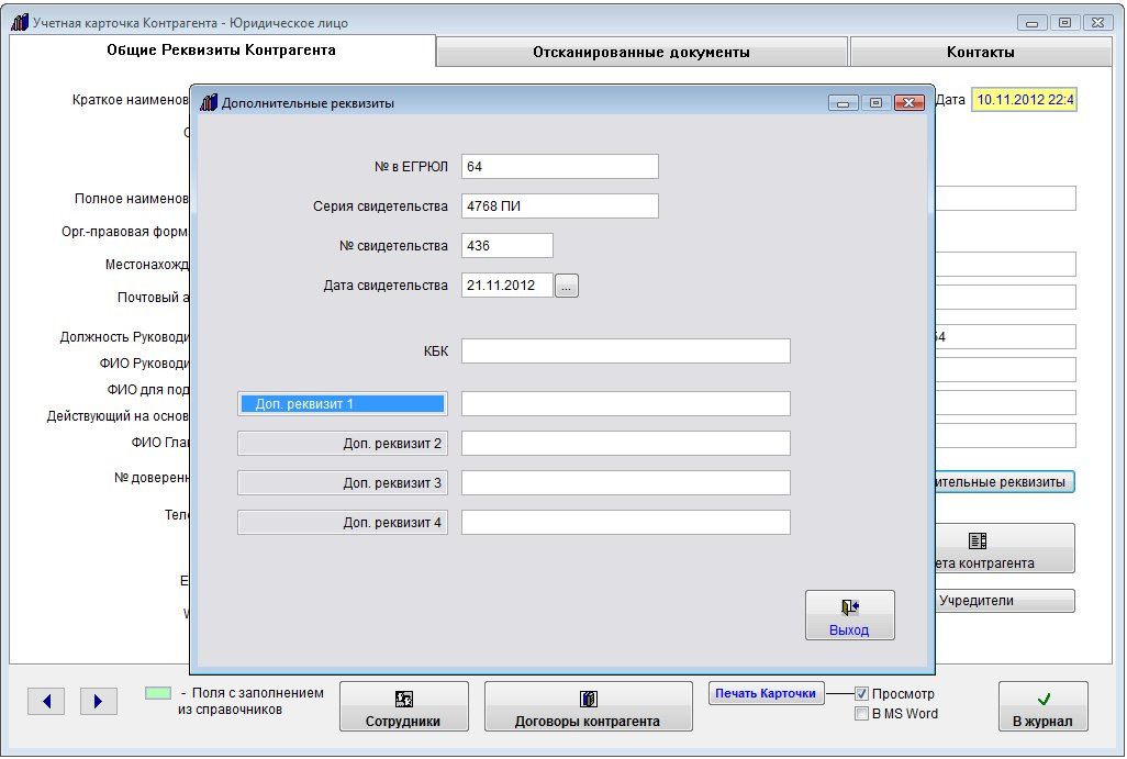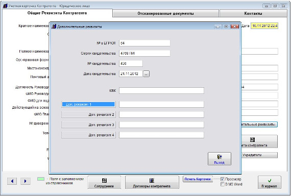 Откроется окно для заполнения дополнительных реквизитов.