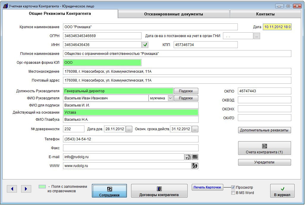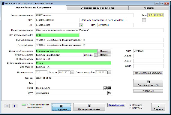 Для введения информации о сотрудниках контрагента в карточке контрагента нажмите кнопку "Сотрудники".