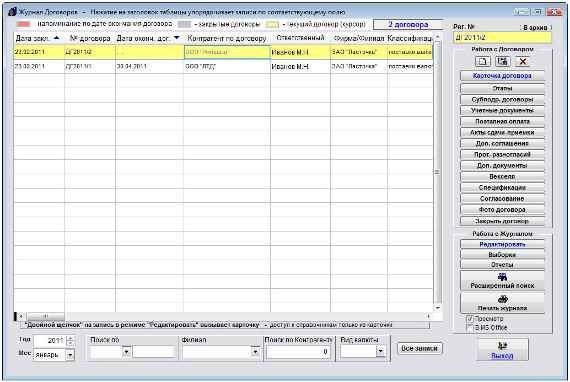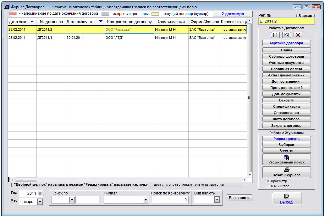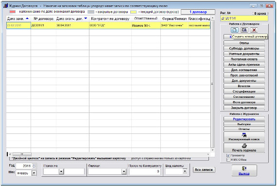 Порядок работы с данным разделом аналогичен основному журналу договоров.