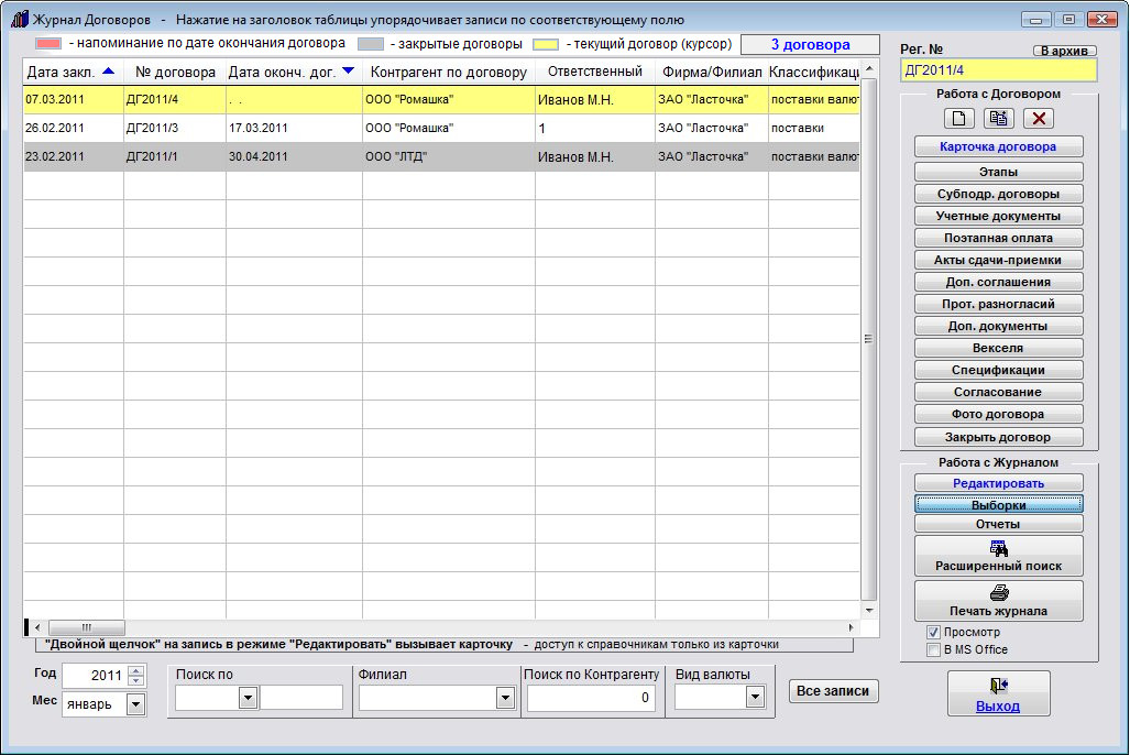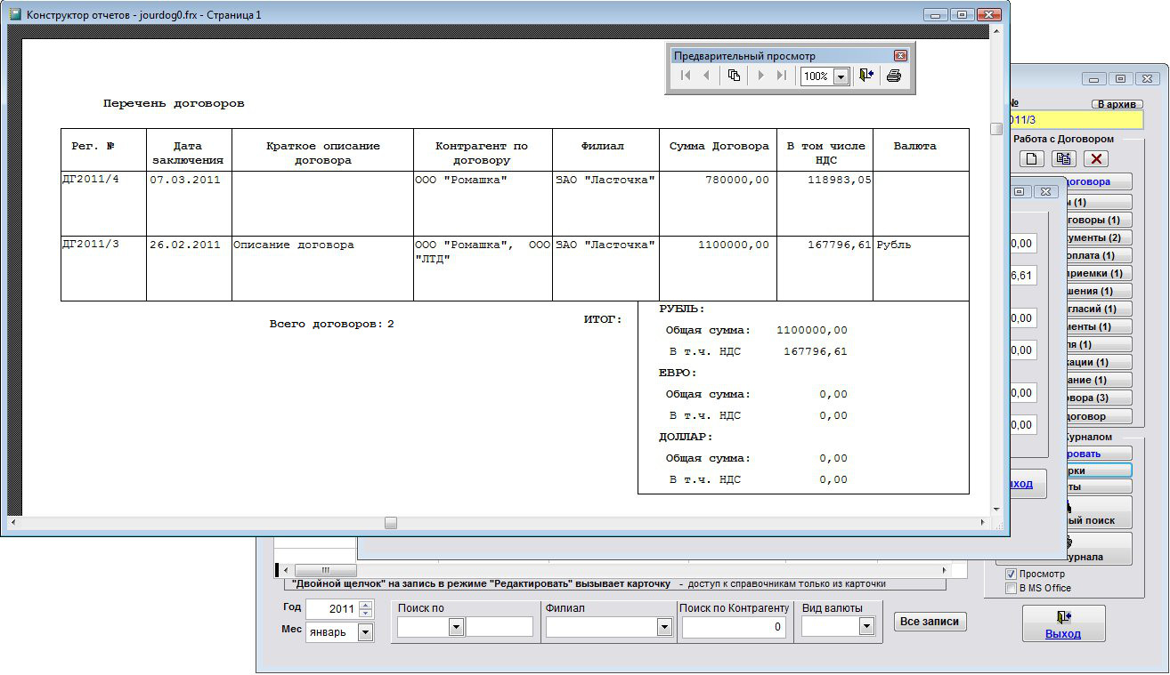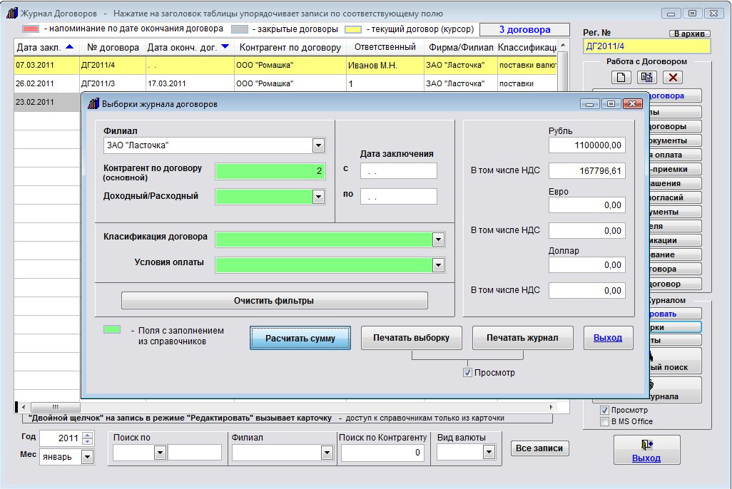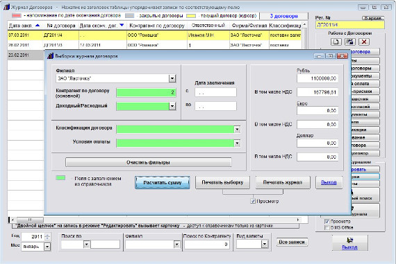 Как сделать выборки по журналу договоров с расчетом итоговых сумм