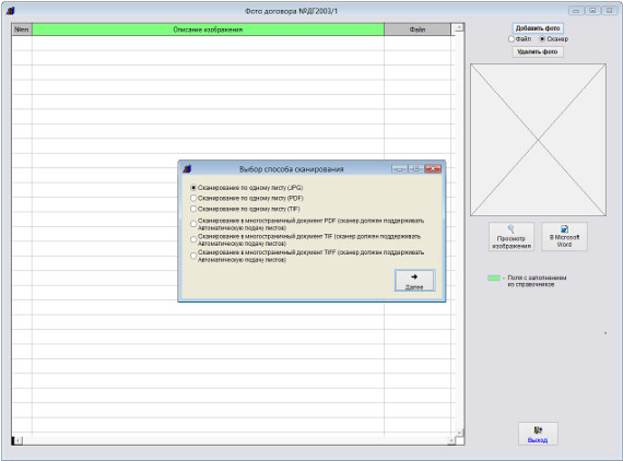 Документ будет отсканирован и автоматически добавлен в раздел Фото договора.
