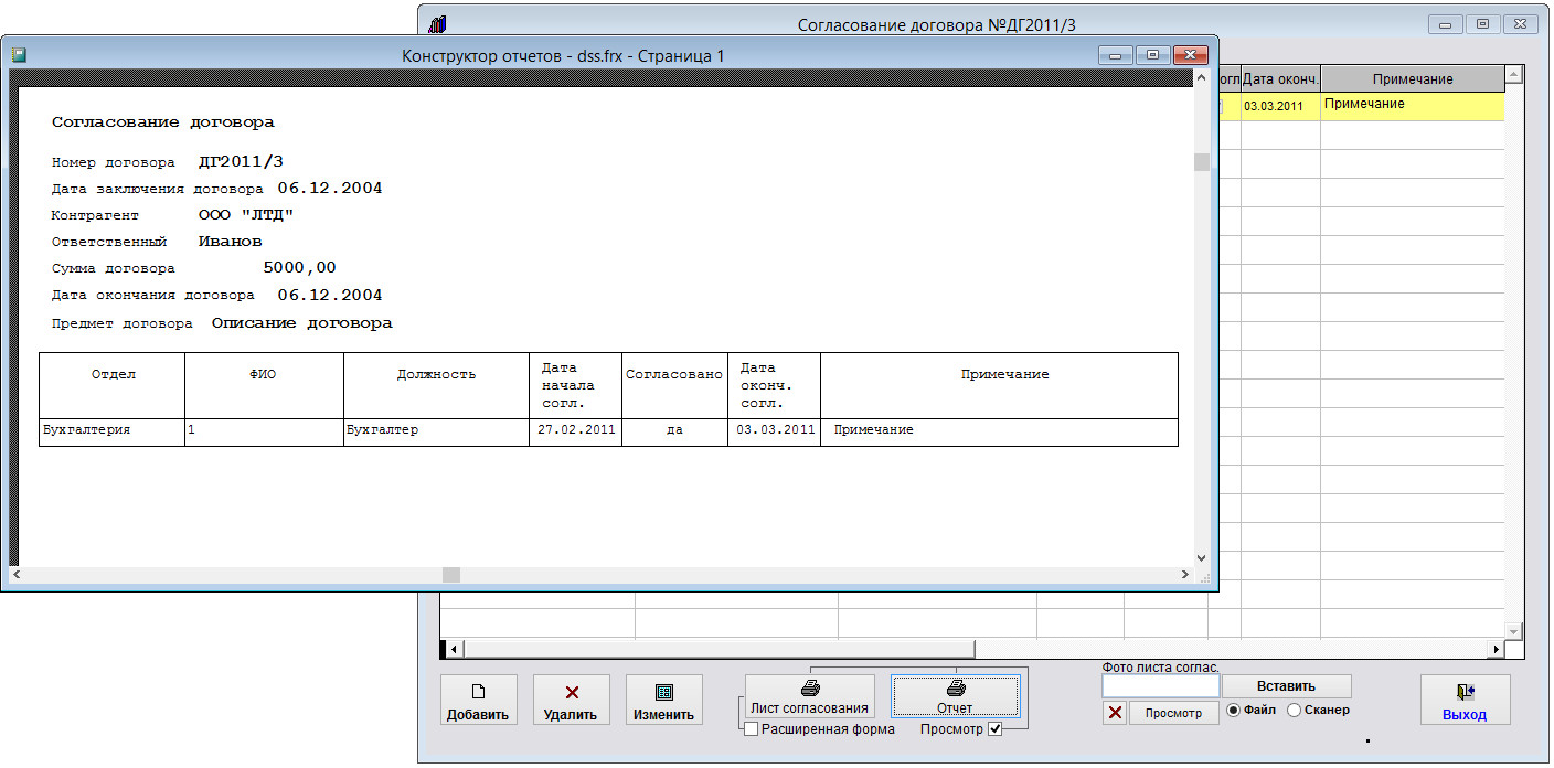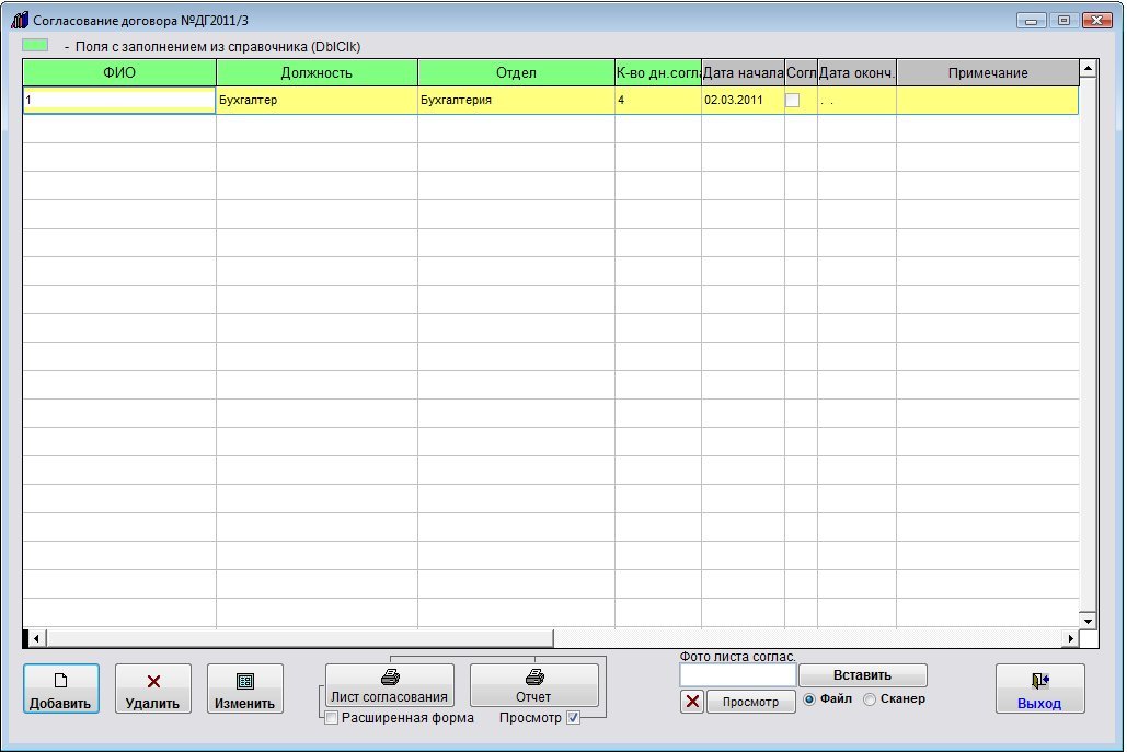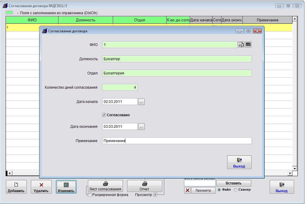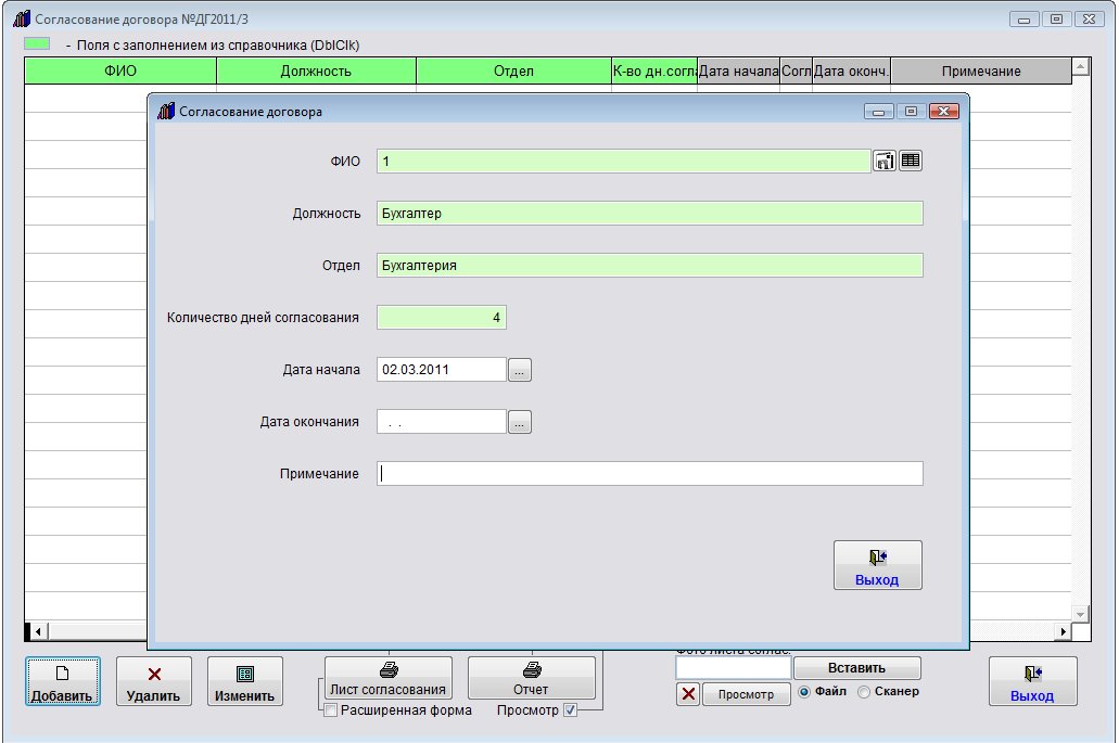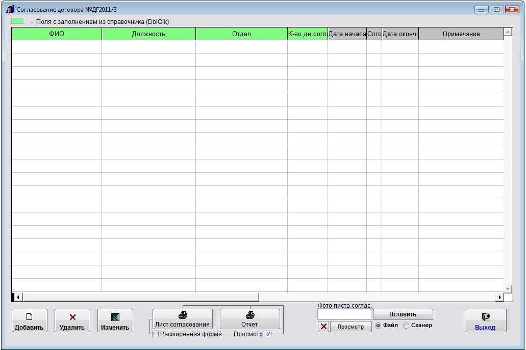 Откроется окно ввода согласующего договор.