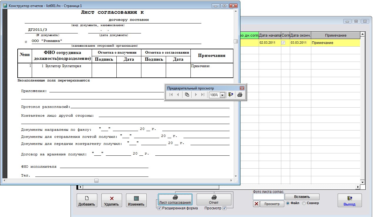 Будет сформирована печатная форма листа согласования.