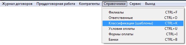 Для ввода классификации (и привязки к ней шаблона) выберите пункт меню "Справочники-Классификации (шаблоны)".