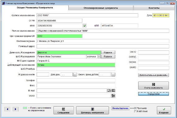 Учредителя можно внести как вручную, так и выбрать ранее занесенного из списка контрагентов.