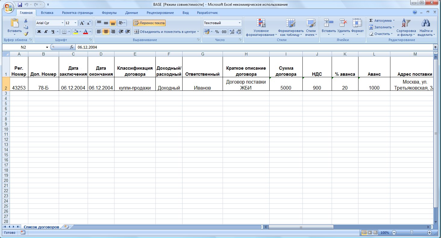 В программе "Ведение договоров" можно загрузить список договоров из файла формата XLS.